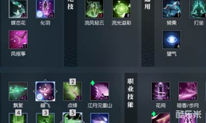 化羽,给自己挂个buff死后原地复活,但一些pvp里不能用。风筝摇,保命技,在解控技能CD的时候可以用。此外还有心法技“绸颜”切模式。武器技能“飘絮”是素问的普攻也是主要输出技能,有3段每一段伤害递增,打到第3下会得到粉蝴蝶,进阶之后第3下还有破防。