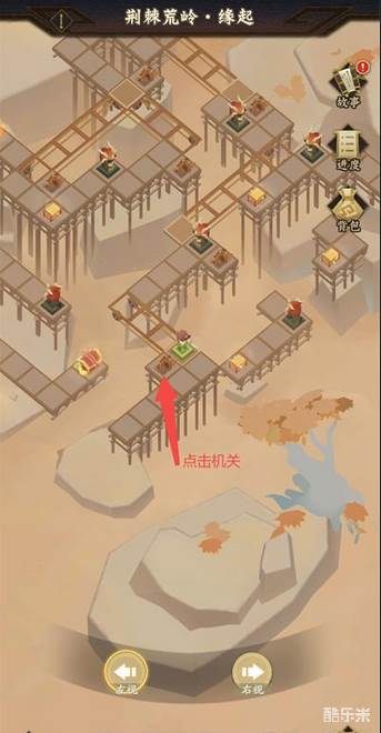 点击机关道具便可以让附近的地块单向滑动,站在可滑动地块上触发机关即可快速移动到滑轨另一端。
