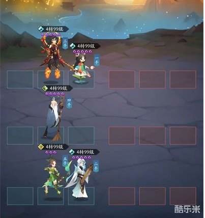 舍弃防守,集中进攻,一回合定胜负。九黎兵主全伙伴最高群体爆发,灭世作为后续残血收割,韩湘子、牛魔王开局加气加攻保证起手伤害爆发,飞羽掉血又会提供不断的群体伤害。