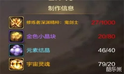 玩家准备好对应的深渊精粹1000个、金色小晶块80个、元素结晶40个以及宇宙灵魂20个就可以制作恶鬼噬魂槌了。