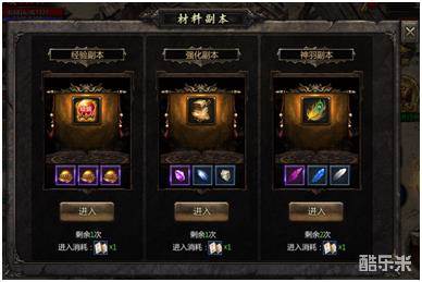 材料副本是经验、强化石、神羽、龙印、魂印的主要产出途径!每天只需要花费少许时间击杀通关副本,即可获得海量奖励。