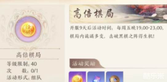 双倍经验的获取途径目前的话最清晰的就是参与副本可以获取,但是并不是所有的副本都是双倍经验的奖励,要想获取双倍经验奖励就要去参与高信棋局这个活动,这个活动在游戏中其实就是一个过棋局的玩法,参与的时候要注意上面的事件,只有每周五的晚上7点至11点之前可以参与。