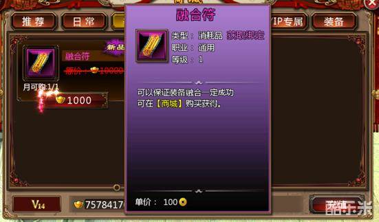 4.融合成功率是根据装备等级的提升而降低,使用融合符可以百分之百合成装备