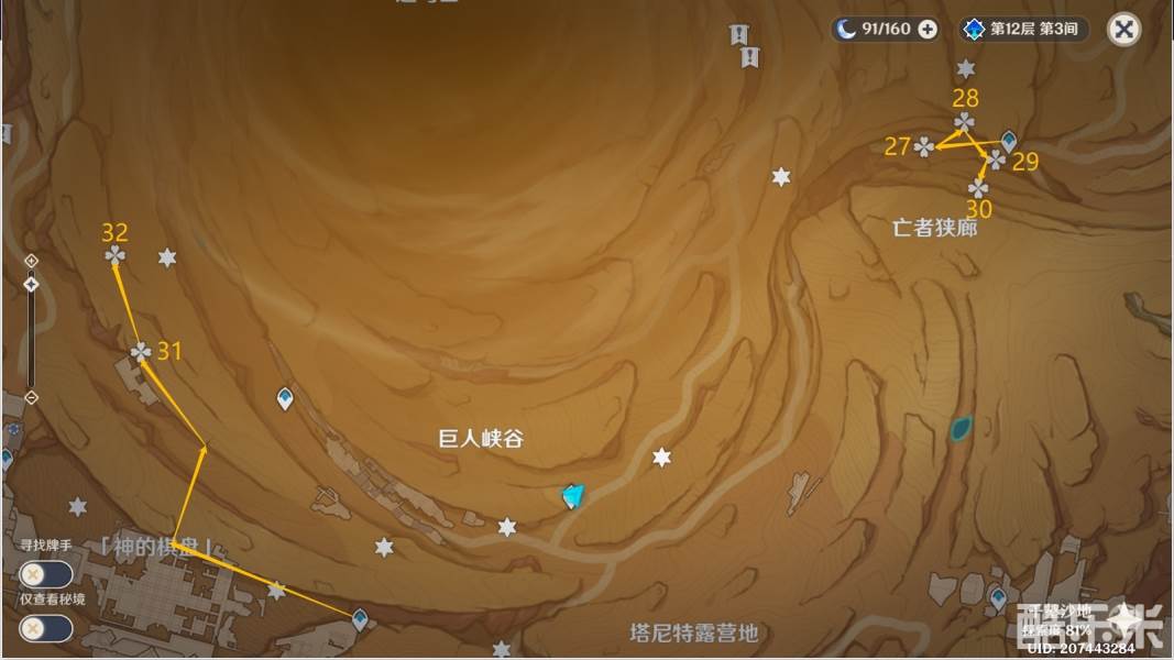2、来到神的棋盘的右下角的传送锚点,按照下图进行解密即可;