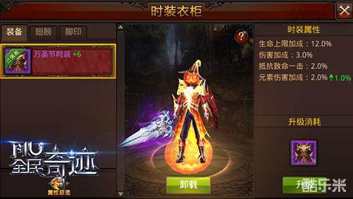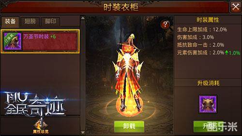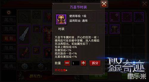 在新版本的《全民奇迹MU》中,时装系统凭借着酷炫的外观和强大的属性加成,受到了广大勇士的喜爱。而此次万圣节活动中,奇异的造型更加衬托了节日的喧嚣,玩家使用后可在衣橱中穿戴,需要注意的是,道具放入衣橱后无法再取出。“万圣节时装”可以给玩家角色的提升生命上限加成+6%,伤害加成+1%,抵抗致命一击+1%,元素伤害加成+1,除此以外,外观也是非常的酷炫,是不是很心动呢?