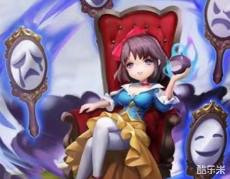 今天介绍的这套阵容的成员有魔镜-公主、黑暗-小红帽、死神、复仇女神-雅典娜和炽天使。今天要说的第一位人物是一位暗族的角色,她是魔镜公主,虽然在这套阵容中是位辅助,但是她能给队友一定的恢复效果。她有一个主动技能和两个被动技能,通过召唤毒苹果和好苹果,造成伤害或恢复生命值。被动技能对提升魔镜公主的生命值和攻击力有很大的帮助;在每个回合结束阶段,魔镜的功能可以把伤害变成治疗,为己方生命最低单位进行治疗。