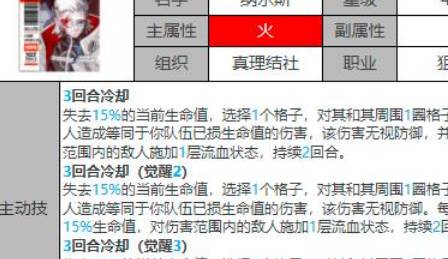 先来说说纳尔斯的作用吧,许多小伙伴只是有纳尔斯这个角色,还不知道他的作用都有什么,可以打什么位置。纳尔斯可以给对手施加流血效果,有纳尔斯的小伙伴们,要想叠加多层流血需要小伙伴们控制角色的血量,在使用主动技能的时候保持一个比较低的水平。