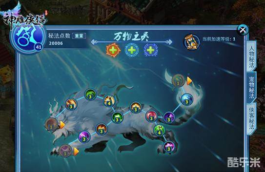 本次《神雕侠侣》手游新资料片中,新增玩法“帮派秘法”。该玩法采用天赋树的形式,大侠们可以在帮派秘境中闯关获得秘法点数和符文,消耗秘法点数激活和升级帮派秘法中的层层天赋树,镶嵌符文获得符文能力和额外天赋树能力。天赋树线路的终端,更有终极天赋效果可以选择。大侠们可以从该玩法中获得人物、宠物和侠客能力的巨大提升,并可根据战局选择不同的终极天赋效果,自如应对各种战斗。