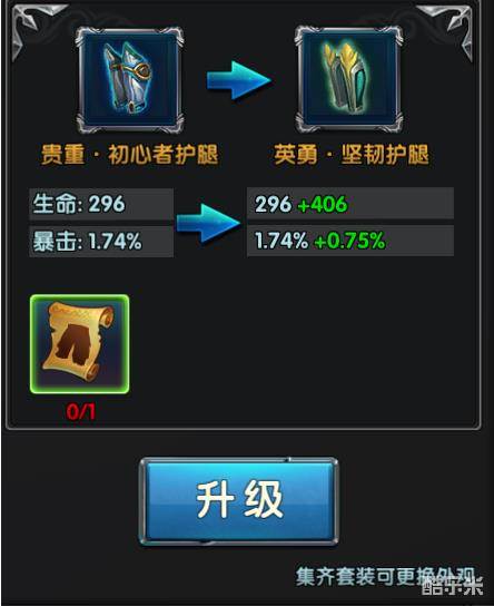 1. 升级装备需要对应等级的图纸以及材料,二者均可在副本以及神秘商店中获得。