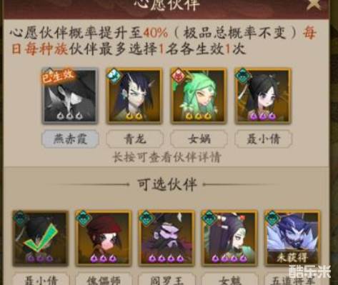 在抽卡达到45次之后,小伙伴们就能够解锁心愿伙伴的抽卡了,可以将上面的四个角色放入选定的心愿池,然后进行抽卡,选择了心愿伙伴之后,每天的第一发极品伙伴就必定会在这四个当中出现,所以还是非常不错的,建议小伙伴们每天抽个30次左右即可。