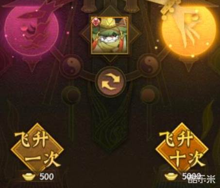 获得之后就需要去神魔殿中飞升获得酒仙了,飞升10次需要花费5000元宝,有2%的概率能够获得,概率相对来说非常低,如果连续飞升300次都没有获得的话,也是可以直接使用六道魂石兑换这个伙伴的,也算是一种大保底了。