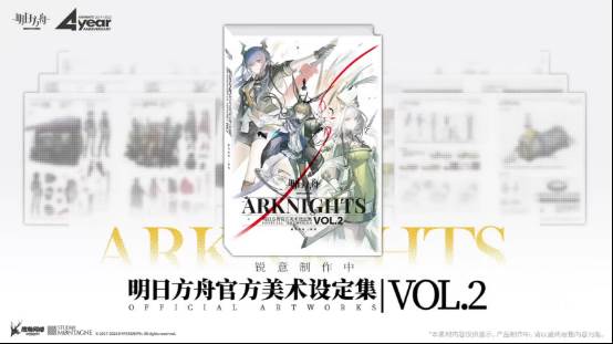根据制作组在庆典直播中的说法,《明日方舟官方美术设定集VOL.2》已经几近完成,其中增加了许多前册《VOL.1》中未能详细展开的敌方势力造型设计,并对《明日方舟》广受好评的UI设计思路进行了结构与展示。