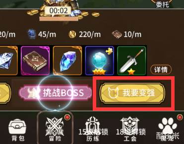 在冒险-中选择,我要变强,就可以看到根据当前情况,根据评估参考,来提升自己的方式。