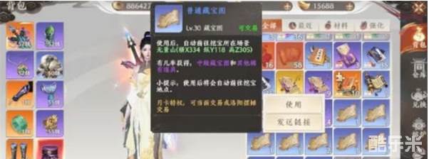 在游戏当中有很多平民玩家为了获得更多的道具,可通过藏宝图寻宝的方式,这是比较便捷的方式之一,藏宝图中有很多材料,比如铜钱。大部分宝藏里的铜钱面额都是几千元,获得铜钱之后可购买很多道具,也能为装备升级。