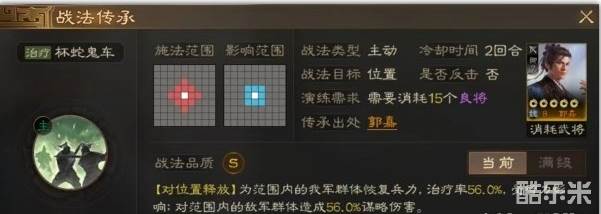 最强势战法首推杯蛇鬼车,这是一个既有伤害又有治疗的综合类技能,由郭嘉传承后得到,使用之后为大范围内我方群体目标恢复兵力,同时对笼罩范围内敌军群体造成等量谋略伤害。配合上高智力武将使用,能够在队伍中既充当输出又充当辅助,现在很多顶级智力角色都纷纷选择,例如诸葛亮,徐庶,郭嘉等。成为很热门的选择。