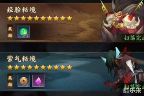 第二个就是紫气秘境,顾名思义就是挑战之后能够获得大量的紫气,还有不少的铜币,同样是十个难度,首通的话奖励更多,每天能够扫荡6次,怪物的攻击比较高,最后一个难度需要至少120w的战力才能挑战通过。