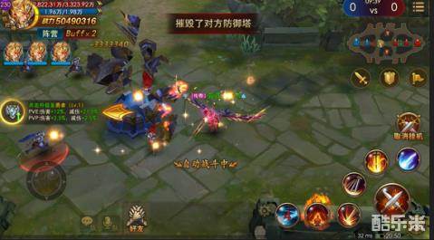 战场中分布着小兵、野怪、防御塔以及水晶,击杀小兵和野怪可获得额外奖励,击破敌方的水晶获得最终胜利。