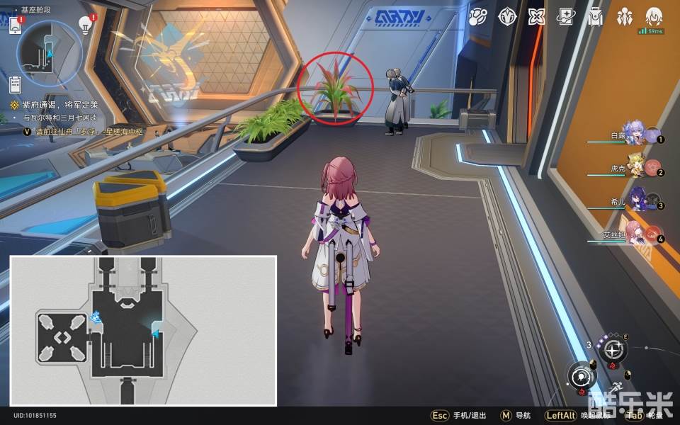 来到基座舱段标记位置,调查角落的植物,并给它浇水
