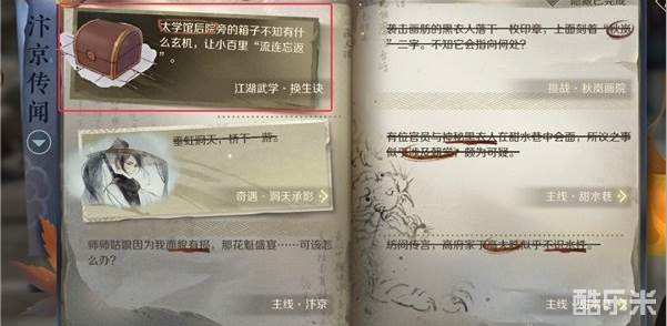 3、之后依据传闻消息前往太学馆,来到坐标点位(1365,1148),可以找到一个箱子。