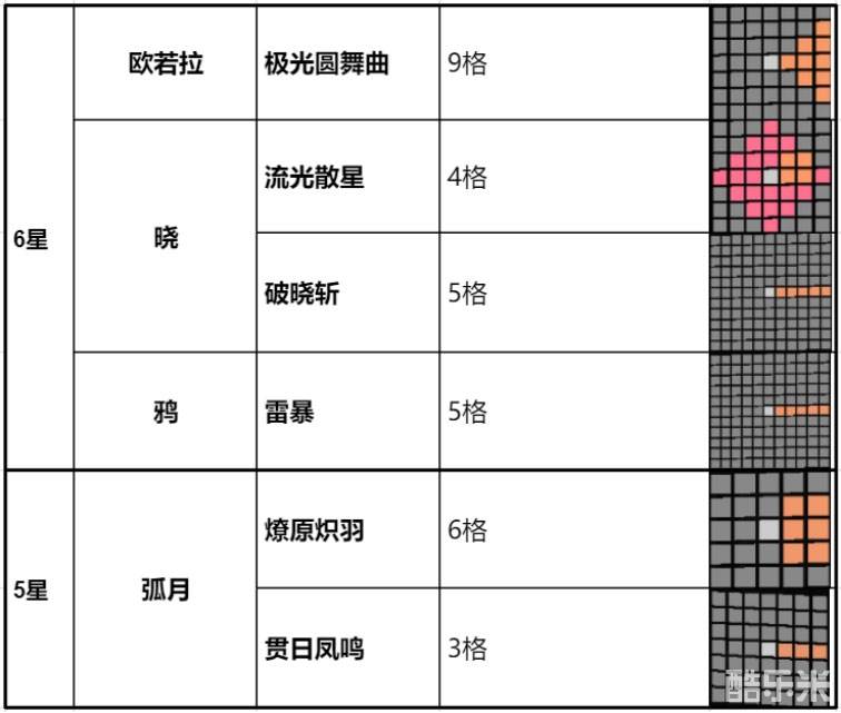 火力职业的技能都附带群攻,这里我们不难看出,欧若拉的技能所能攻击的格数是在所有技能在最基础的情况下面积最广的,但对于单一格子造成的伤害不高。