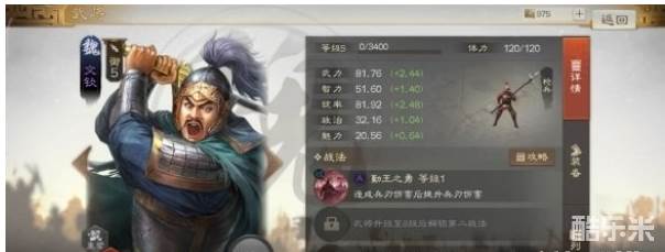 首先文钦在属性上满级分别可以达到武力235.56,智力158.60,统率238.52,政治131.96和魅力102.36的水准,这其中它最高的两项数值还是在武力和统率上,由此可见他非常擅于征战沙场,因为这两项属性都是与部队攻防属性息息相关的数值,然后他作为一个枪兵,虽然各项数值没有特别顶尖的,但破两百的武力也足够在关键时刻补刀了。