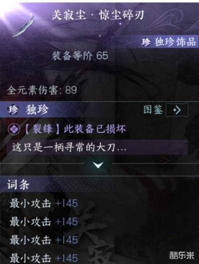 击败关寂尘后,或将掉落其独珍装备【关寂尘·惊尘碎刃】,提供巨额最小攻击加成。