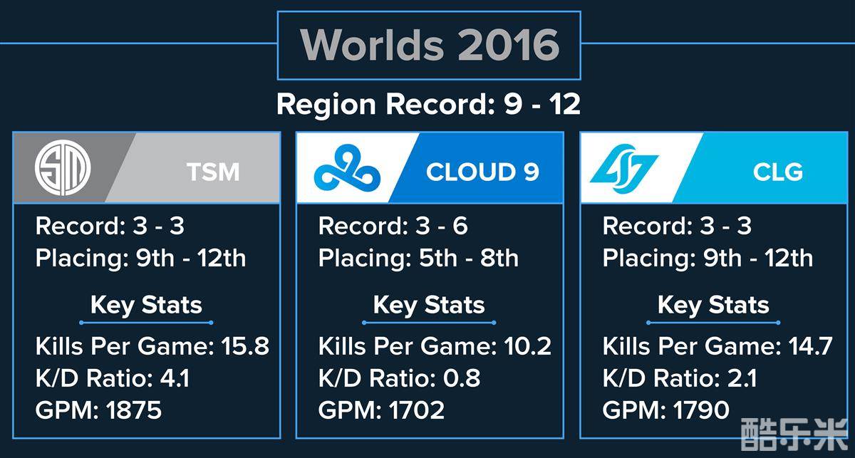 NA一直拥有很高的人气,但他们在世界赛的表现一直不是很好。NA最好成绩是第一赛季TSM的第三名,而当时韩国的队伍还没有参加世界赛。而LCS成立以来,没有一支NA队伍进入过4强。