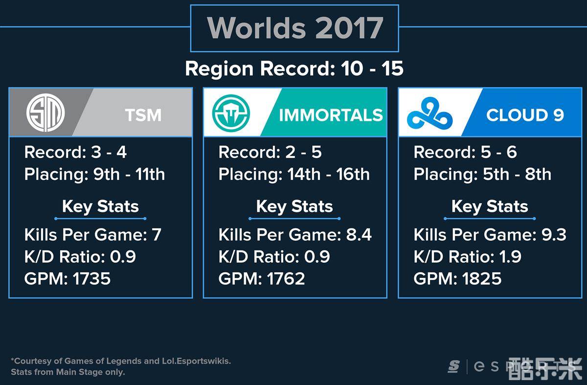 The score esports发布了NA赛区S3-S7的世界赛表现综述。