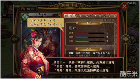 在游戏中武将有三项属性,分别是:“武勇”、“策略”、“统御”。