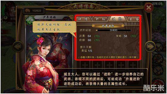 吞噬不同的武将后,可能成功“升星进阶”进阶成功后,将获得大量主属性成长。