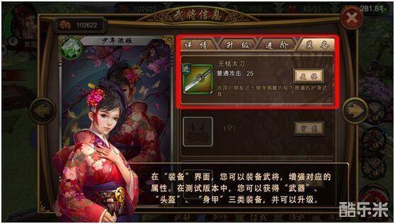 游戏中目前开放了“武器”、“头盔”、“身甲”三类装备,可提升属性并可以升级。