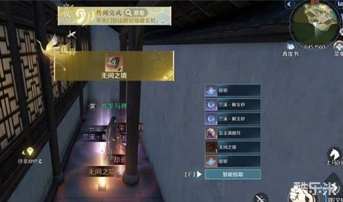 4、这里其实不需要进去,我们绕着屋子来到后面,调查缝隙处可以看见宝箱,打开箱子即可拿到“无间之境”。