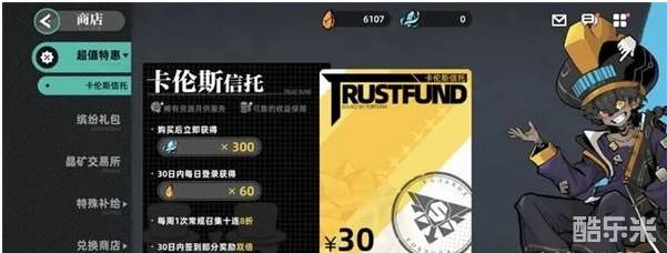 月卡30块,300蓝钻+每天60合计1800黄钻