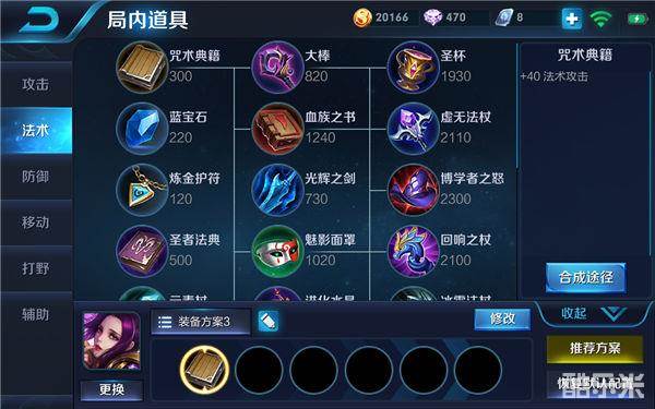 对于一名法师英雄来说,在出门装的选择上拥有多种目标,但是对于芈月来说,虽然同样是法师英雄,但是出门装的选择则较为简单。由于芈月没有法力值,释放技能并不需要蓝耗,因此蓝宝石和炼金护符并不需要考虑。而对于咒术典籍和神速之靴的选择上,个人更推荐大家选择咒术典籍。首先咒术典籍可以提升芈月的法术强度,使得芈月不论是在输出能力还是回复能力上都有不错的提升,同时咒术典籍后期可合成装备选择较多,过渡平滑,不会拖慢芈月发育节奏。同时芈月一技能拥有位移能力,因此在前期对于移速来说并没有过多的需求。