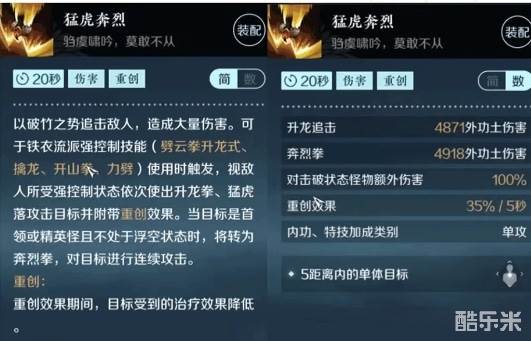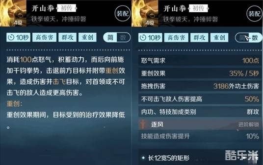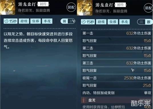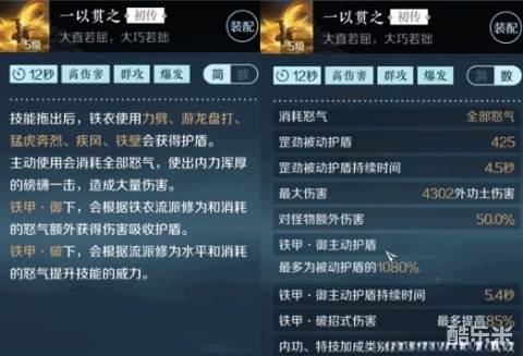 只要用该技能搭配力劈、游龙盘打、猛虎奔烈、疾风和铁壁技能后可以获得防护护盾,如果在技能加持下释放所有怒气值,可以造成最高爆发伤害。