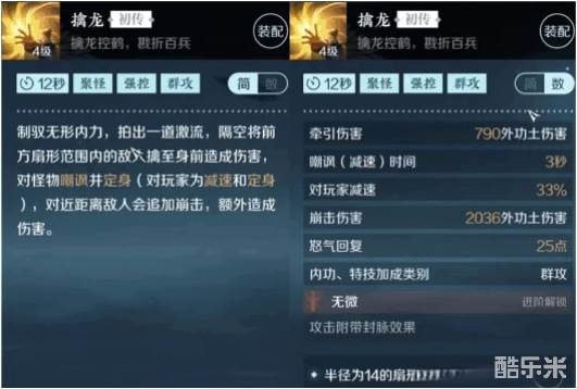 驾驭无形的内里,释放出一段牵引伤害,伤害范围为扇形,如中此技能可以对其怪物加以嘲讽和定身效果,并且对敌人有减速和定身性能。
