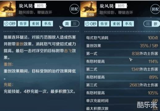 连环腿部攻击,在对敌人造成伤害的同时增加重伤效果,在消耗怒气的状态下,可以显著提高威力。