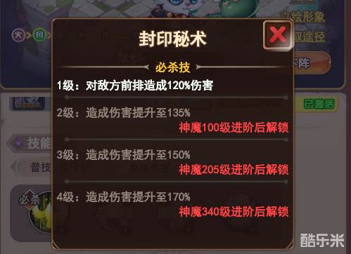 从定位上来说熊猫属于坦克,其普攻属于单体技能。其必杀技封印秘术属于伤害技能,不过效果只针对与前排,1级释放的时候对前排造成自身伤害120%的伤害,伤害系数会随着技能等级的提高而提高。