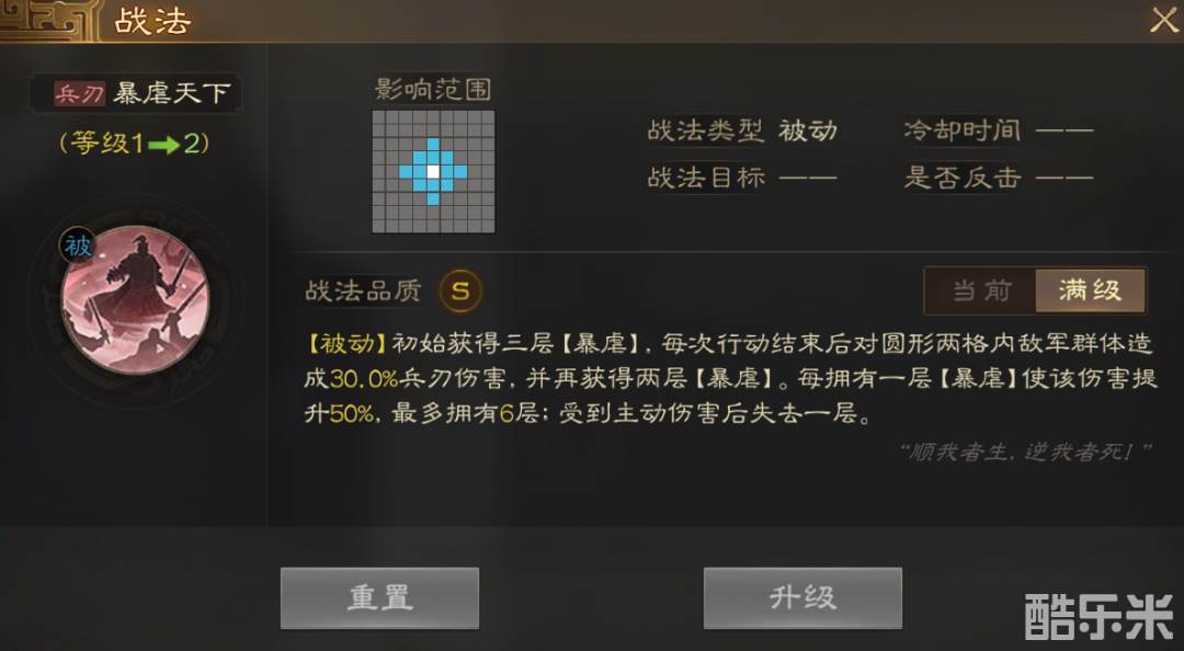 董卓,按没有暴虐层数计算,30%X2的兵刃伤害(算能炸到2个人)+浴血破虏即时70%X2+流血70%X2兵刃伤害+见血封喉46%X2X2谋略伤害=340%兵刃伤害+184%谋略伤害。