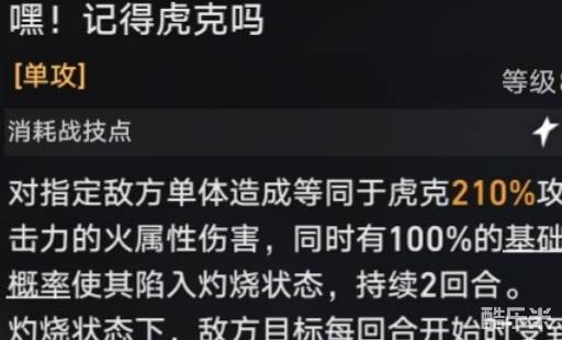 虎克大人攻击灼烧伤害状态的敌人时候,还可以追加一次攻击,并恢复能量,而且还有回血能力。