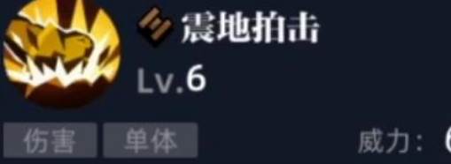 首先可以看到下图的这个跺地的图标,代表的技能就是震地拍击,威力可是有六十的单体伤害技能,无消耗类似普攻,还能不断的升级,有概率触发特殊的效果也就是让敌方速度下降,对于单体是比较的靠谱的减速技能。