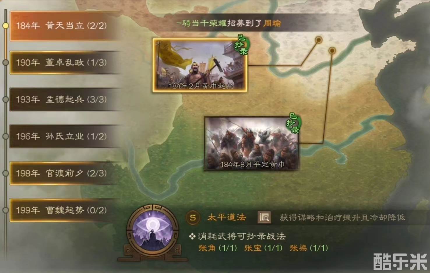 在S2赛季开启的事件【黄天当立】-【黄巾起义】中,消耗武将 张角(1)、张宝(1)、张梁(1) 可抄录战法。