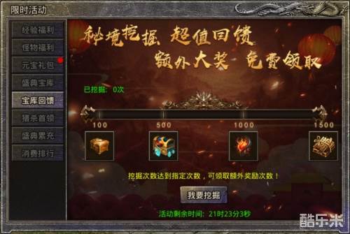 秘境挖掘达到指定次数,可领取额外的免费大奖!
