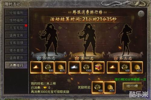 只要您在活动期间花费元宝,即可上榜并有机会赢得排名大奖!即使未上榜的玩家,只要达到一定的元宝消费量,也能够领取丰厚的奖励!消费越多,奖励越丰厚。