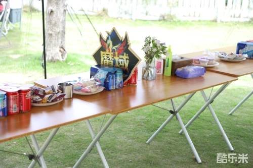 上百平米露营场地内,两个主要大型帐篷分别等待迎接《魔域手游》与《魔域手游2》的众位玩家,露营桌上海准备了啤酒饮料零食与各种水果,期待能让大家在互动交流之余,也能一饱口福。
