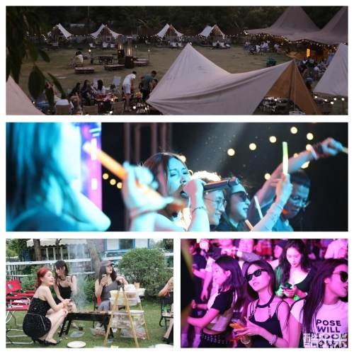 著名DJ MONA老师光速上台,用节奏点燃露营地全场,调酒老师也不甘示弱,带来多款以舍得酒为基酒的调制产品,大家围在「舍得相伴 域你同行」主题调酒台前,畅饮美酒,欢乐蹦迪,其乐融融!