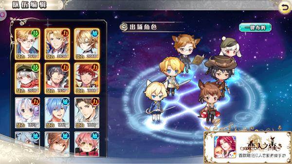 每一轮钓鱼都可以选择6个出场角色,钓鱼环节虽然不像闯关战斗那样对战力要求较高,但是战力值依然对钓鱼的成绩有所影响,选择战队中战力最高的六个人组成战队,单人战力越高钓到鱼的几率越大,所以,想要在钓鱼中获得好成绩也少不了提升王子的技能哦!
