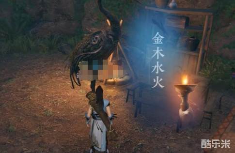 之后在1104 710这个位置有一口井,从井口跳下去,推开第一道石门,走到一个坑处直接跳下去。在这里面有一只石鹤,根据它拿到线索。在第二道石门处,按照金木水火土的顺序,将木机关人打败。就会获得一个宝箱,里面也有三清鹤羽。