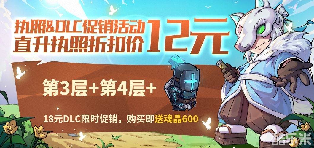 直升执照折扣价,12元,18元DLC捆绑包(第3层+第4层+限定套装鬼灵骑士)限时促销,购买即送魂晶600。