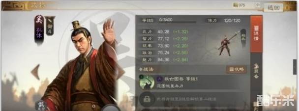 3、从战法这里就能够看出来,孙休这个武将只适合在后方或者中后方的位置呆着,在阵容方面来看因为这个角色的治疗可以治范围内所有的角色,那么我们就可以在阵容搭配上不必过于拘谨,非要哪几个人搭配在一起才能发挥出自己的最大威力。